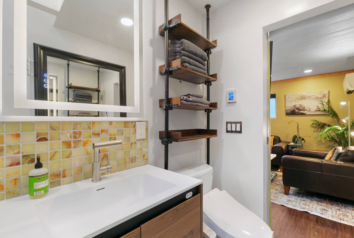 Welcome to the Garage Mahal. New & Built w love & luxury. You will find time to reflect on the joys of life easily. Full kitchen w laundry spa bath w bidet, 70″ HDTV, Adjustable Queen bed w zero gravity and a daybed. Surrounded by gardens, outdoor fireplace, fruit trees, grape vines, & 5 blocks to one of the best parks in Portland. It features a Community center w pools, gym, dog park, & wooded trails. Close 2 OHSU, St. Vincent, & Village shops….