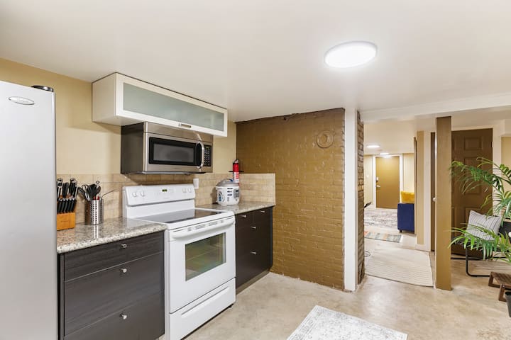 Super quiet and cozy with full kitchen, laundry, private entry and bike storage on a city bikeway.
